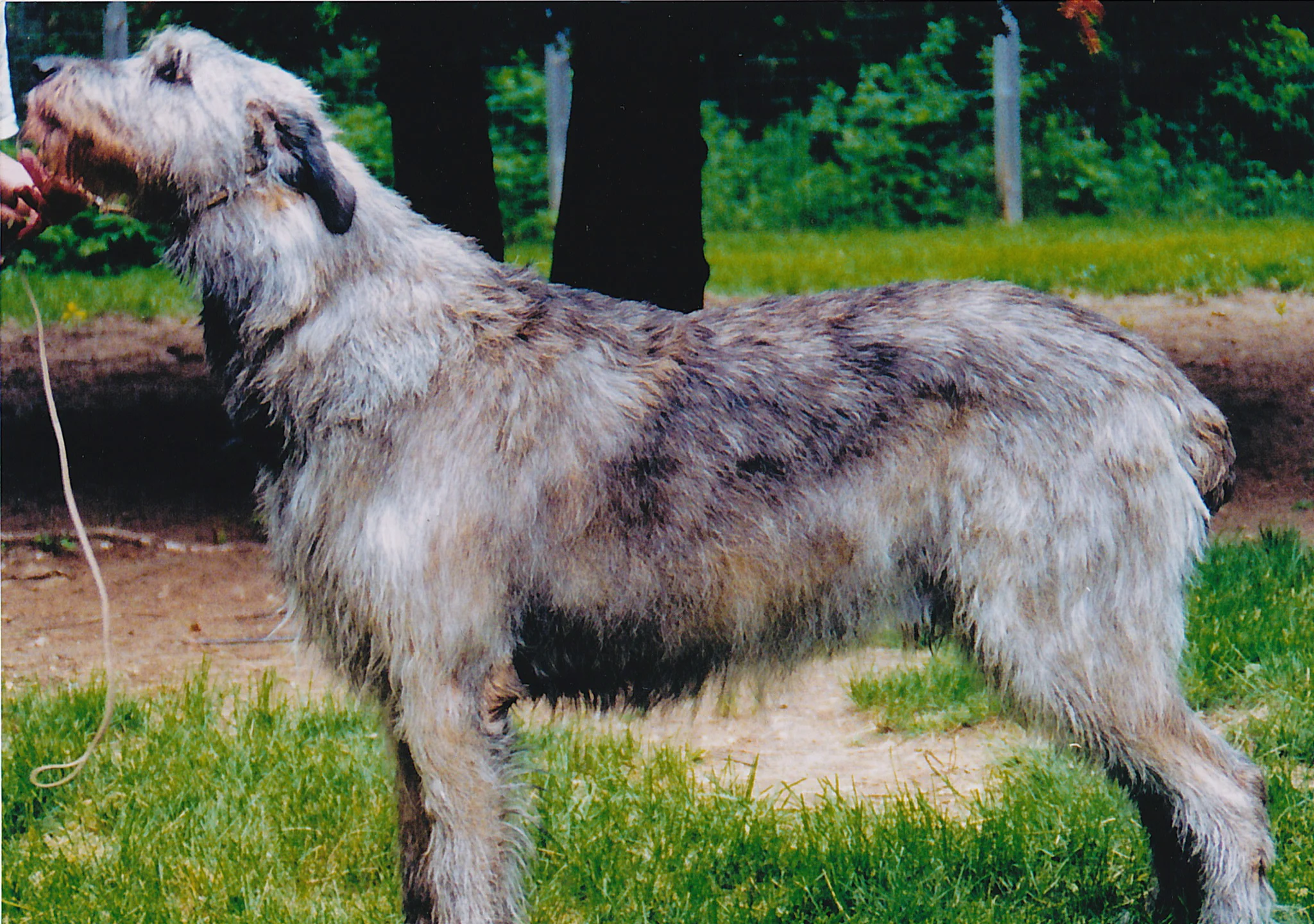 In the photo above, Ballyhara Rumor illustrates ideal symmetry in length of trunk to ribs to loin, as well as depth to elbows and spring of ribs. A seasoned breeder hardly needs to place their hands on the hound to feel that the hound is well-ribbed up and has a powerful arched loin. Notably, also, observe that the thorax is perfectly angled, neither steep nor tubular leaving ample room for the diaphragm's contractions.