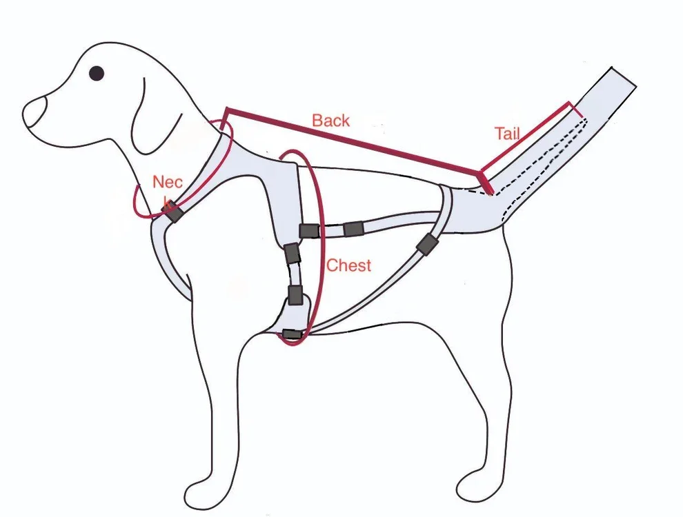 Two-part system for secure fit and comfort.Breathable padded tail sleeve. Supportive harness with wag strap and anti-twist technology.